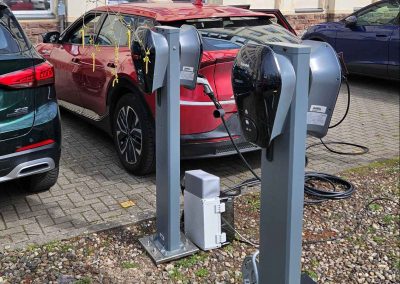 Für mehr Flexibilität bei der Energieversorgung im Quartier setzen wir auf vier bidirektionale Ladestationen mit jeweils 22 kW. Die Stationen ermöglichen nicht nur das Laden von Elektrofahrzeugen, sondern perspektivisch auch die Rückspeisung von Energie aus den Fahrzeugbatterien in Gebäude oder ins Netz.